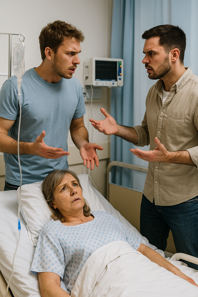 — Сейчас… мама, ты же всё равно не справляешься. Тебе тяжело. Мы хотим взять на себя. Мы же сыновья.