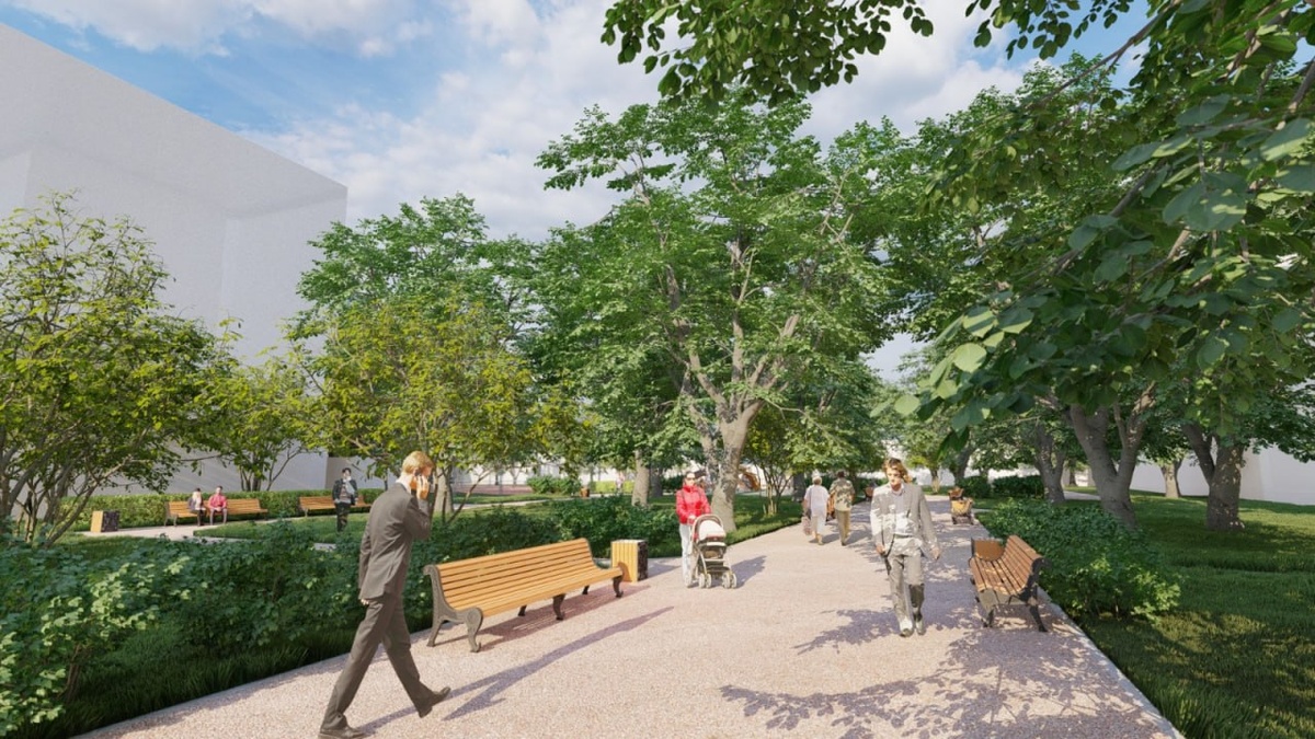 В Центральном районе благоустроят Джазовый сквер. В нем установят детскую площадку в форме саксофона, горку-барабан, металлофоны и качели. Доминантой станет сцена площадью более 80 кв.м. Название скверу присвоили в 2023 году. Он находится напротив единственной в мире Филармонии джазовой музыки, основанной мультиинструменталистом и композитором Давидом Голощекиным. Работы планируют завершить к августу. Фото: Telegram-канал ГАТИ Подпишись на Город+