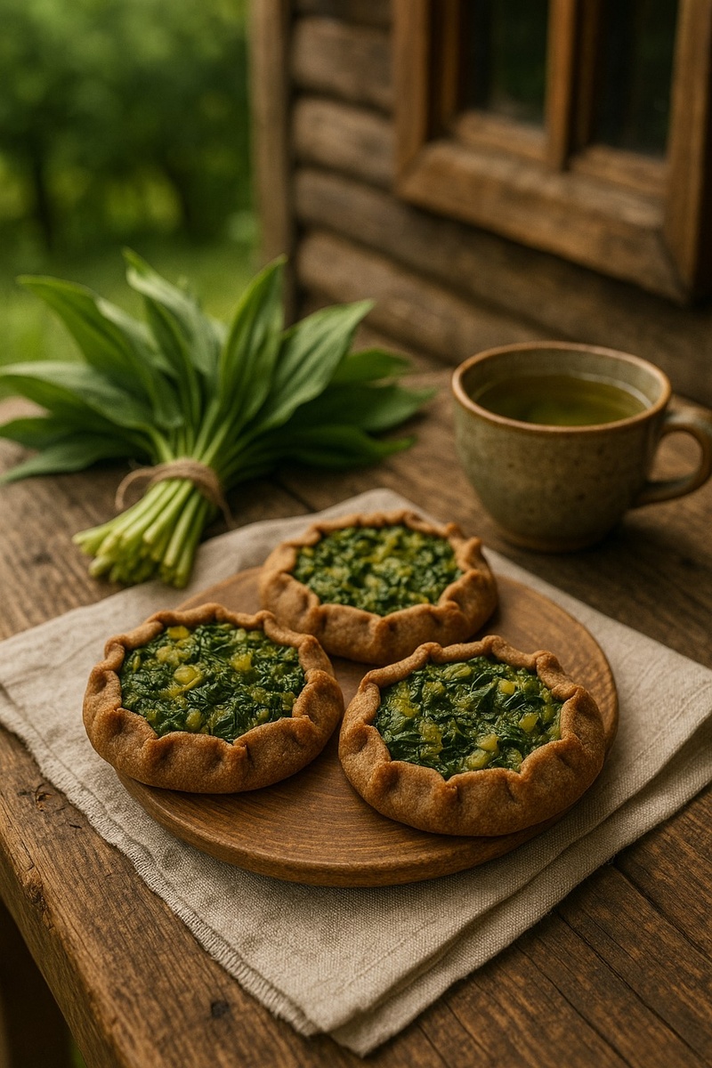 Весна на Севере — короткая и суровая. Но даже в это время находчивые хозяйки готовили сытную и ароматную выпечку, используя то, что давала природа: дикорастущую черемшу и простое ржаное тесто. Знакомьтесь — калитки с черемшой! Эти пирожки с открытой начинкой — забытая гордость русской кухни, заслуживающая второго дыхания 💚 Калитки родом с Русского Севера — из Карелии, Архангельской, Олонецкой и части Финляндии. Их пекли из бездрожжевого ржаного теста с самыми разными начинками: картофель, каша, творог, ягоды. Весной, когда не было другой зелени, в ход шла черемша — дикорастущий "дикий чеснок", который собирали в лесах. Считается, что калитки — символ женской заботы. Их форма — открытая, как ладонь. Начинка из черемши придавала выпечке бодрящий вкус и насыщенный аромат. Особенно часто их делали в пост, без добавления мяса или молока. Классические калитки делают так: Подаются калитки тёплыми — с квасом, травяным чаем или молоком. Миф: Калитки — это только сладкая выпечка.