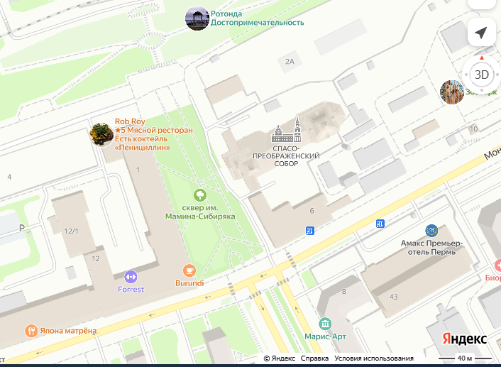Соборная площадь – главная площадь Перми. В советские время Соборная площадь превратилась в сквер имени Мамина - Сибиряка. Победа демократических преобразований ознаменовалась возвращением площади исторического названия. Хотя если открыть Яндекс- карты, на месте как-бы Соборной площади значится «сквер имени Мамина – Сибиряка». Площадь начала формироваться в конце XVIII — начале XIX века. Рядом с тогда еще строящимся Спасо- Преображенским собором. В конце XVIII века почти одновременно произошли два события. В 1781 году было образовано Пермское наместничество, А в 1775 году был упразднен Пыскорский Спасо-Преображенский монастырь. Досужая на выдумки захудалая немецкая принцесса, стоявшая тогда во главе Российской империи, ловко эти два события увязала. Екатериной II было «высочайше повелено монастырь сей перевесть… во вновь устроенный город Пермь с наименованием вместо Пыскорского Пермским Преображенским же». В монастыре решили построить новый собор. Соответствующий губернскому горо