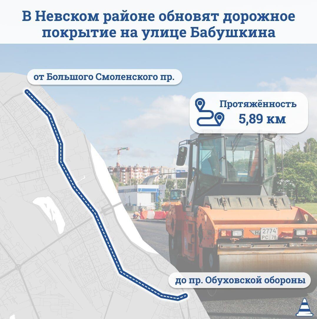 В связи с ремонтом с 29 мая по 7 августа движение транспорта по улице Бабушкина будет ограничено на участке от Большого Смоленского проспекта до проспекта Обуховской Обороны, включая перекрёстки. Чтобы снизить неудобства для жителей, работы будут вестись поэтапно.