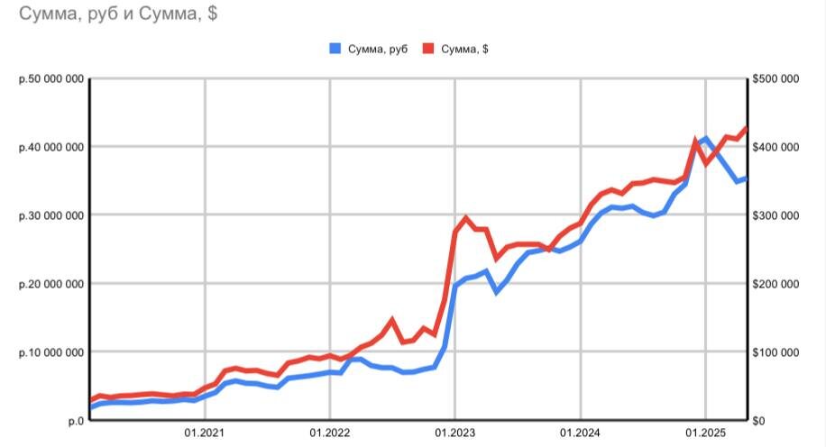 За последние годы я перепробовал десятки направлений и стратегий. Оглядываясь назад, можно выделить ключевые факторы, которые больше всего повлияли на рост: После челленджа 50 источников дохода я начал постепенно сокращать позиции в портфеле, избавляясь от того что работает не эффективно или занимает много фокуса внимания. Сейчас я свожу портфель к трем ключевым направлениям, в которых наращиваю ключевую компетенцию: На старте ты работаешь на капитал. Со временем — капитал начинает работать на тебя. Простой пример: 100 000 ₽ под 10% годовых = +10 000 ₽ 10 000 000 ₽ под 10% = уже +1 000 000 ₽ в год Один из главных принципов — не хранить все яйца в одной корзине. Даже если одно направление «просело» - доход от других сфер выравнивает конечный результат. Моя стратегия — делать упор на росте активного дохода, а не на сокращении расходов. Чем он выше, тем больше я могу инвестировать, и быстрее накапливать. Раз в месяц я подбиваю свою доходы, расходы и результаты в инвестициях. Это позволяе