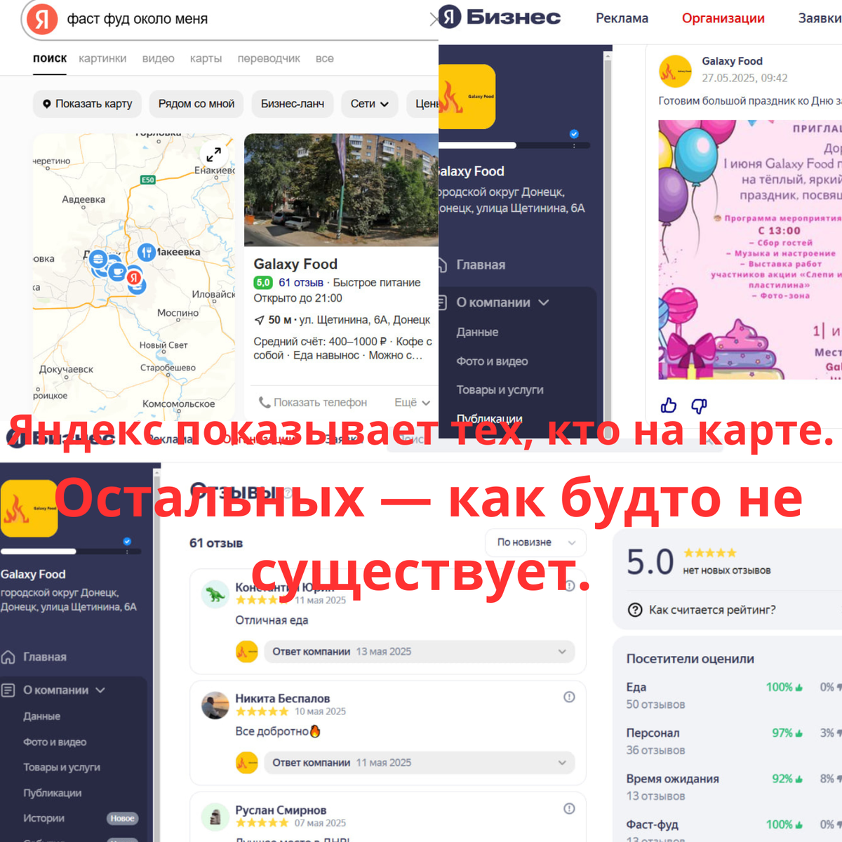 Вот 5 причин, почему вас должны находить там: 1️⃣ Клиенты ищут по району: «салон рядом», «кафе на Широкой», «аптека Донецк». Если вас нет — они идут к другим. 2️⃣ Ориентир в районе: карта показывает, где вы, как пройти и когда открыто. Особенно важно — для новых клиентов. 3️⃣ Доверие: карта с фото, отзывами и описанием вызывает больше доверия, чем просто номер телефона. 4️⃣ Выдача в поиске: даже без рекламы вы можете попасть в топ — если карта оформлена качественно. 5️⃣ Отзывы работают на вас: короткий отзыв от клиента — это уже рекомендация.✋ Но всё это работает только если карта оформлена правильно.