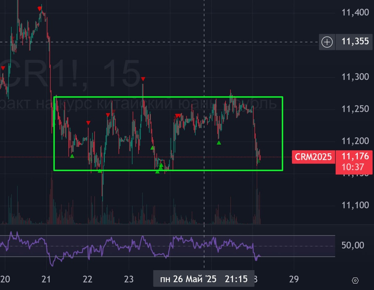 🔤 Юань-Рубль 🟢 Логика без изменений - описана тут. Вчера очень перспективно поджимались к верхней границе текущего мини-накопления, сегодня снова получили отбой вниз. Причем все движение вниз было на МАЛОМ объеме с 9 до 10 утра. Продолжаем стоять в боковике. 🟢На минутках видно присутствие крупного игрока, который удерживает цену для своего набора. Куда он набирает - вверх или вниз скоро узнаем. 🚗 Жду прострел вверх, пессимизмом не страдаю по юаню. #юаньрубль #прогнозрубля #юань #рубльдоллар #CNY #CNYRUBF #CNYRUB #bogdanoffinvest