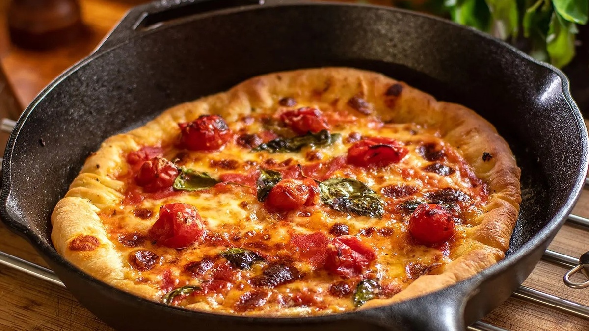 Приготовьте настоящую пиццу Маргарита дома, используя всего одну сковороду! Для идеальной пиццы важно сильное тепло и раскалённое основание, чтобы тесто пропеклось и подрумянилось снизу. Не у всех есть печь для пиццы или камень для выпечки, но у большинства найдётся сковорода.