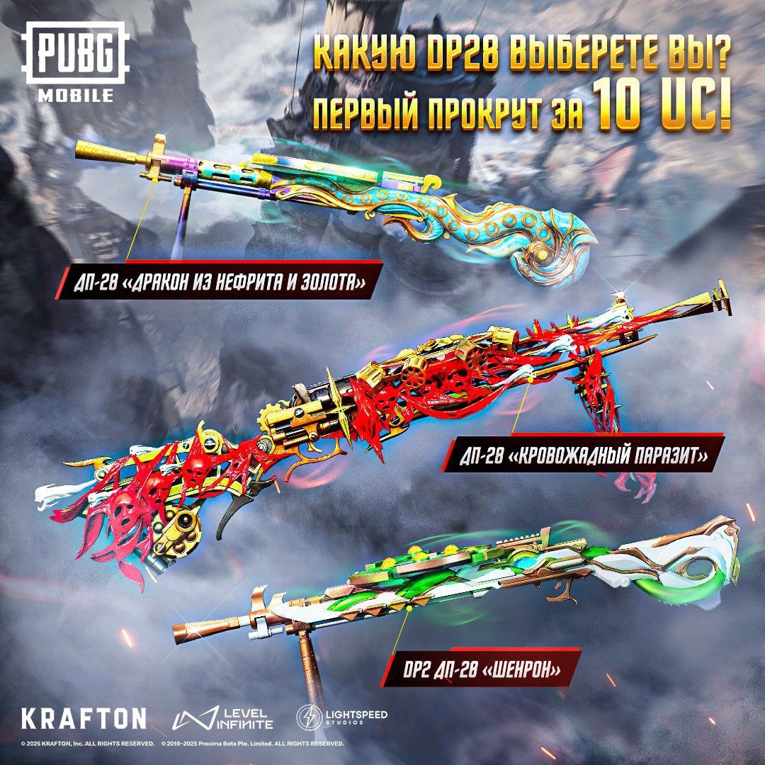 Какой скин на ДП-28 выберешь ты? 💥 👍 — «Дракон из нефрита и золота» ❤️ — «Кровожадный паразит» 🔥 — «Шенрон» А если твоего фаворита нет в списке — напиши в комментариях, какой скин считаешь лучшим! 👇 🎁 Не забудь: новый улучшаемый скин уже в игре, а ежедневный прокрут — всего за 10 UC! Испытай свою удачу прямо сейчас! #PUBGMOBILE #PUBGMBloodbane380PV #PUBGMBloodbane380 #PUBGMSETS380 #PUBGM #PUBGMCIS