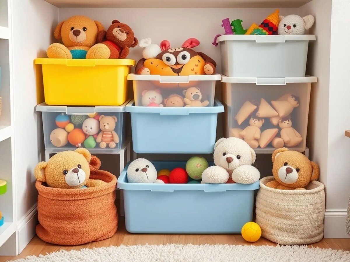 Кто из родителей не сталкивался с хаосом из кукол, машинок и конструкторов посреди комнаты? Игрушки имеют удивительное свойство расползаться по всему дому со скоростью света. Хорошая новость: есть простые и даже красивые способы навести порядок без ежедневных битв с маленькими хозяевами комнаты. Давайте разберёмся, как хранить игрушки удобно, практично и без нервов. Прежде чем скупать все корзинки в магазине, стоит понять несколько базовых правил. Они помогут создать систему, которая действительно работает, а не просто выглядит красиво на фото. Если трёхлетке нужно залезать на стул, чтобы достать любимого мишку, система хранения провалилась. Лучшие решения: Моя знакомая Марина сделала гениально просто – приклеила фото содержимого на каждую коробку. Теперь её четырёхлетний сын сам убирает машинки в нужное место. Дети не будут возиться с аккуратным складыванием. Чем проще процесс уборки, тем больше шансов, что он вообще состоится. Плюшевых зверей – в одну большую корзину, конструктор – в