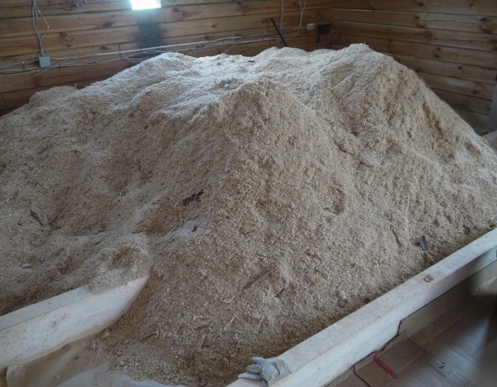 Так как опилки весят больше, чем минеральная вата, для них необходимо готовить более мощное перекрытие, что тоже сказывается на бюджете.