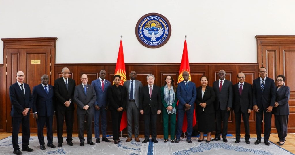 КРнын тышкы иштер министри Жээнбек Кулубаев БУУдагы чет элдик мамлекеттердин туруктуу өкүлдөрү менен жолугушуп, өлкөнүн социалдык-экономикалык реформалары жана глобалдык демилгелердеги ролу тууралуу маалымат берди. 🌍 Министр Жээнбек Кулубаев Нью-Йорктогу БУУнун туруктуу өкүлдөрү менен жолугушту. 🤝 Жолугушууга Ангола, Белиз, Гана, Кения, Конго, Мальта, Маврикий, Мозамбик, Науру, Папуа – Жаңы Гвинея, Сент-Люсия, Сенегал жана Руанда өлкөлөрүнүн өкүлдөрү катышты. 📈 Министр Кулубаев өлкөнүн социалдык жана экономикалык өнүгүүсүндөгү реформалар тууралуу маалымат берип, БУУнун мүчө мамлекеттери менен кызматташуунун маанилүүлүгүн баса белгиледи. 🌿 Кыргызстан климаттын өзгөрүшү, тоо күн тартибин илгерилетүү, биоартүрдүүлүктү сактоо, туруктуу өнүгүү жана коопсуздук менен тынчтык маселелеринде глобалдык демилгелерди алдыга жылдырууда жогору бааланды. 🏛️ Чет элдик өкүлдөр «Кызмат» мамлекеттик мекемесине, БУУнун Кыргызстандагы үйүнө жана өлкөнүн тарыхый-маданий кооз жерлерине да барышат.