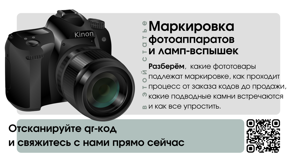 Маркировка фотоаппаратов и фототехники обязательна по закону - без нее нельзя производить, хранить, перевозить или продавать товары. Ошибки в работе с маркировкой могут стоить компании десятки или даже сотни тысяч рублей штрафов, не говоря о потере товара или блокировках. В этой статье разберем, какие фототовары подлежат маркировке, как проходит процесс от заказа кодов до продажи, какие подводные камни встречаются и как все упростить. Читайте внимательно - это поможет вам избежать проблем и сэкономить время. С 1 октября 2020 года в России обязательна маркировка фотоаппаратов, фотовспышек и других товаров с кодом ТН ВЭД 9006. Нужно маркировать: - пленочные фотоаппараты - фотовспышки - принадлежности для фототехники - микроносители - лампы-вспышки - фотокамеры для печатных пластин/цилиндров Исключение - товары с кодами 9006 91 000 0 и 9006 99 000 0. Если вы производите, ввозите или продаете такие товары - обязаны передавать данные в систему Честный Знак и использовать коды Data Matrix.