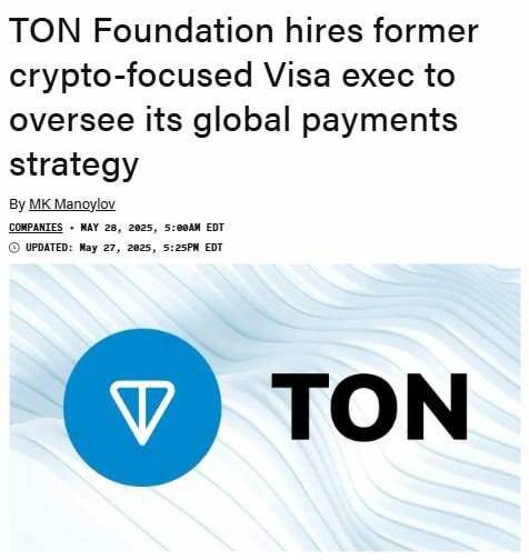 🤑✉️ TON Foundation нанял бывшего топ-менеджера Visa по криптовалютам