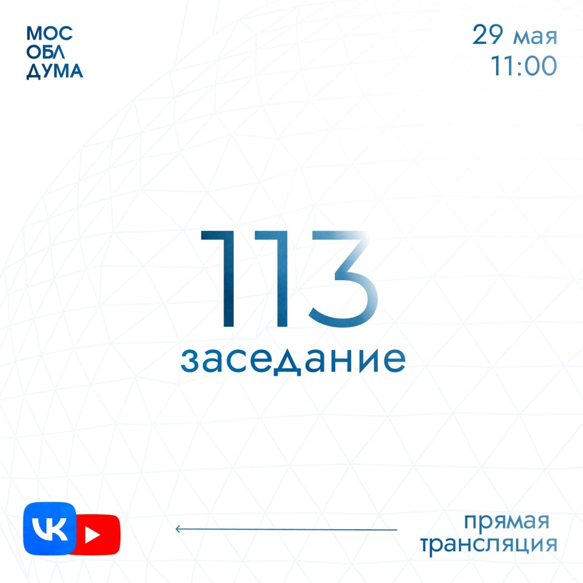 ⚡️Завтра, 29 мая, в 11.00 состоится 113-е заседание Мособлдумы