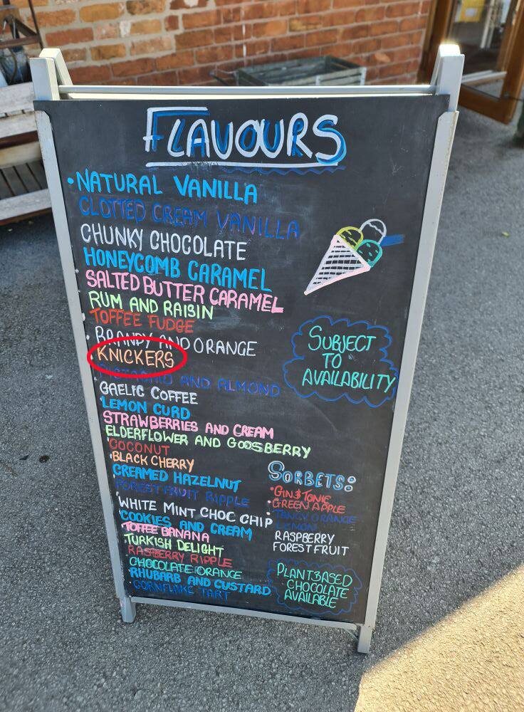 Скоро лето, а вместе с ним — жаркие дни и желание покушать вкусное холодненькое мороженое. Но только сладкоежки из Ретфорда (Ноттингемшир, Англия) пришли в замешательство, когда увидели меню кафе «Thaymar Ice Cream». Их насмешило и смутило в тоже время, что мороженое стоимостью 3,95 фунтов, со вкусом арахиса, карамели и шоколадным соусом. Звучит аппетитно, если не обращать внимание на название — «Knickers» (т.е. трусики). Тем не менее, мороженое «со вкусом трусиков» — вовсе не то, чем кажется. Просто в заведении работают шутники, которые, придумывая название десерта, немного изменили название популярного шоколадного батончика «Snickers». Так что мороженое можно пробовать без всяких опасений. Источник: