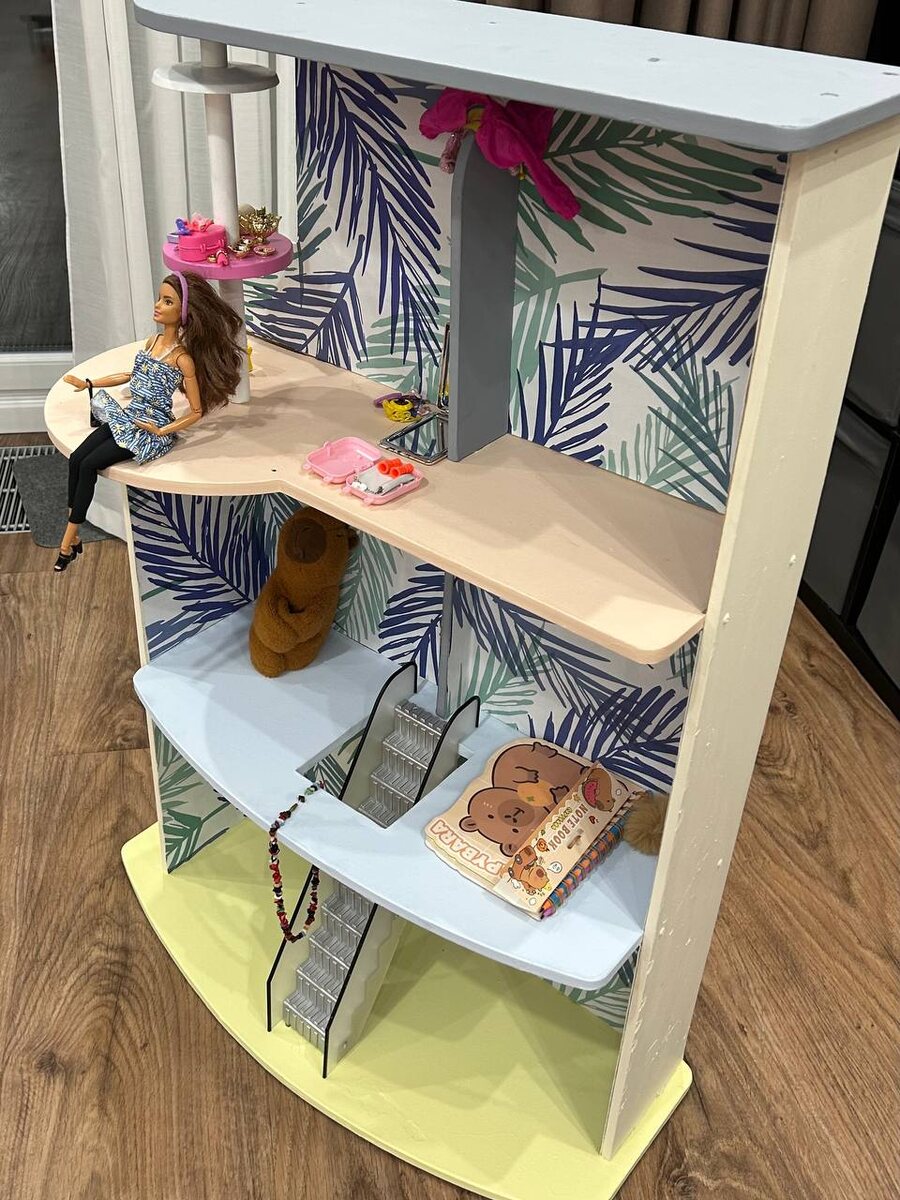 Хоумстейджинг в действии Мы за выходные сделали ремонт в доме. Только дом был кукольный, но тем не менее) Соседка отдала достаточно убитый кукольный дом (по фото это не было так заметно вначале). Когда принесли дом, было уже поздно. 🤪😁 Дома были тестеры краски Dulux. Дом отмыли, работа закипела. Стены хотела обклеить остатками обоев, но их не оказалось 🙈🤪😁 В ближайшем хозяйственном купила кленку с пальмами, она плотная, отлично компенсировала перекосы и неровности. Теперь стены не только красивые, но и моющиеся 😁 Надо подумать еще над деталями и декором. На днях заеду в FixPrice, куплю гирлянду с подсветкой, может декор увижу интересный. Теперь думаем, что сделать в домике: 🌸 дом 🌸 отель 🌸 магазин А вы чем развлекались на выходных?