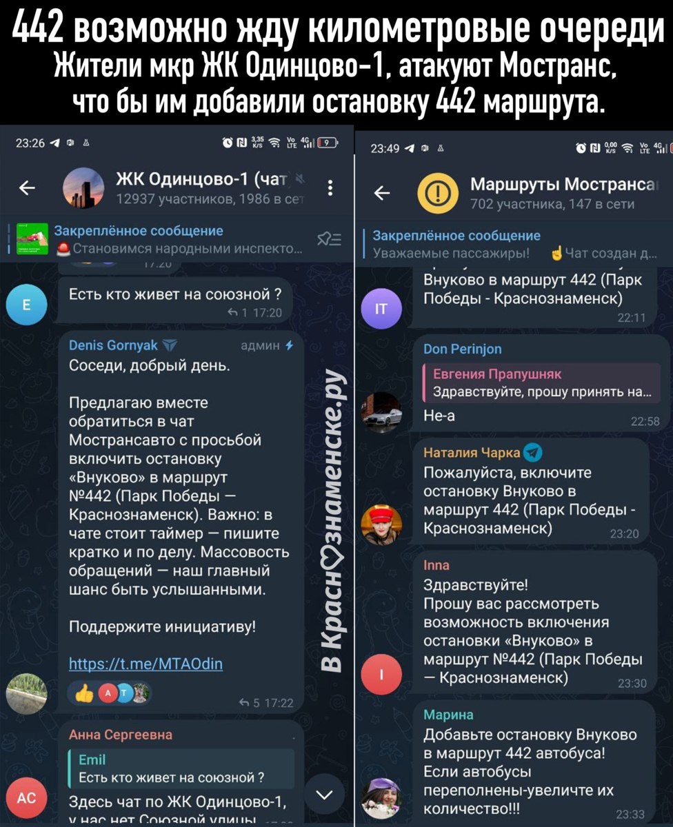 Жители ЖК Одинцово-1 требуют остановку на 442 маршруте.
