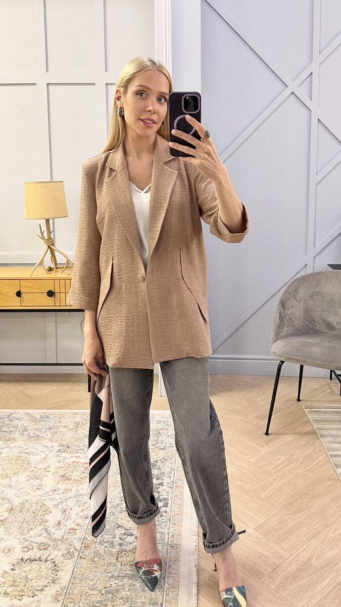 Давайте подберем пару к этому великолепному жакету, добавим немного свободы и каплю непринужденности — вуаля, ваш кэжуал-образ готов! Вы