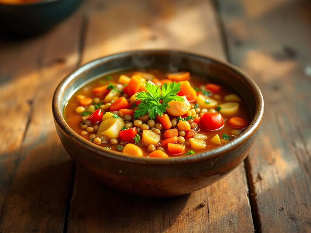 Попробуйте этот вкусный и полезный овощной суп с чечевицей! Делитесь своими впечатлениями и отмечайте друзей, которые любят здоровое питание! 🍲