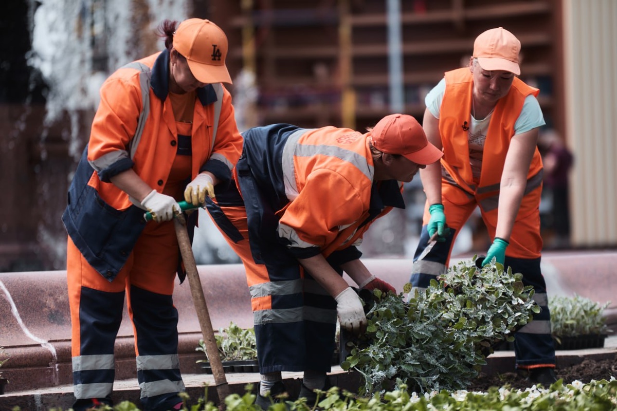 📸 На фото: высадка цветов в Пушкинском сквере специалистами ГБУ «Автомобильные дороги»