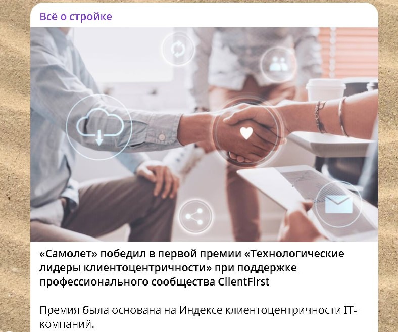 Ржу от новости, стучу по полу ножками, вытираю слёзы! У Самолёта очередная висюлька. Застройщик победил в премии «Технологические лидеры клиентоцентричности». Премия была основана на Индексе клиентоцентричности IT-компаний профессионального сообщества ClientFirst. В описании сказано: «Показатель отражает целостный образ взаимодействия организаций с клиентами и его составляющие. В среднем по рынку его значение составило у Самолёт 59% — что говорит о достаточно высоком уровне клиентоцентричности среди других участников исследования». Вы что-нибудь поняли? Я, нет! Кроме того, что некоторому «сообществу» срочно нужны деньги. Эй, Самолёт, куда повесишь очередную висюльку, твой иконостас не поместится уже в концертном зале. Может, лучше начнёшь сдавать дома вовремя? Или это уже не по карману, в отличии от премии «коиентоцентричности». Так то да, понимаю, обошлась тебе эта «победа» не дорого! ☝️