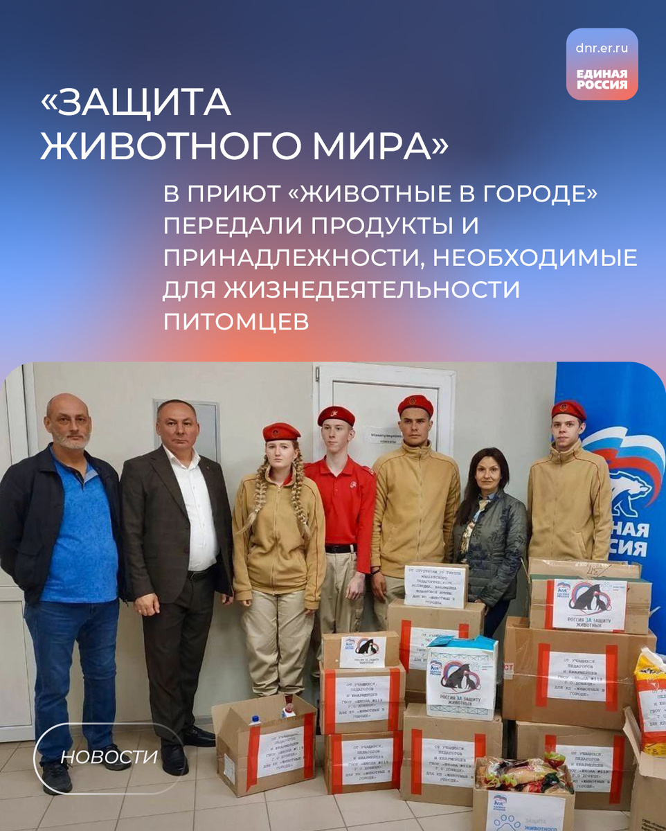 ♥️ В мире, где каждое доброе дело имеет значение, нельзя забывать о тех, кто не может попросить о помощи словами. По партийному проекту «Защита животного мира» приют «Животные в городе» вновь почувствовал: рядом – люди с отзывчивыми сердцами. 🚚 Вместе с руководителем Управы Будённовского района Михаилом Меренковым, активистами партии «Единая Россия», а также юнармейцами и педагогами школы № 119 Донецка в приют были переданы корма, средства гигиены и всё необходимое для четвероногих подопечных. 🇷🇺Именно такие добрые инициативы учат милосердию, делают детей взрослее, а общество – человечнее. #ЕдинаяРоссия #ЗащитаЖивотногоМира #ЕРДНР