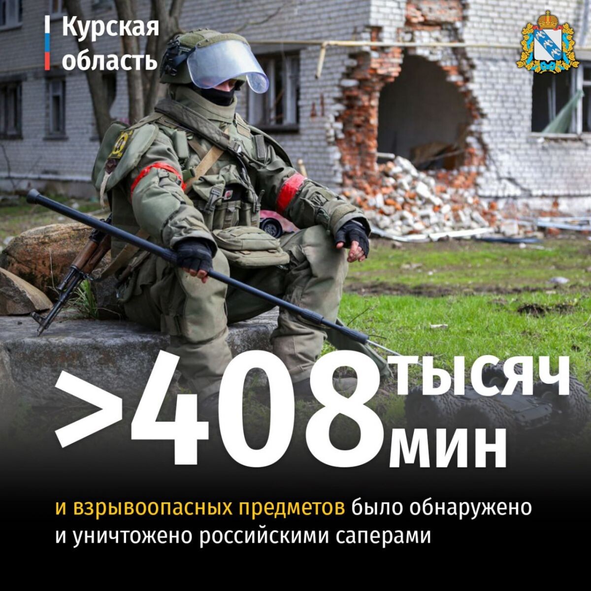 Российские саперы на сегодняшний день обнаружили и уничтожили более 408 тысяч мин в курском приграничье. Разминирования более 40 тысяч га, 767 км дорог, более 11 тысяч зданий. Напомним, по решению оперштаба до окончания работ по разминированию закрыт въезд в 122 населенных пункта приграничных районов.