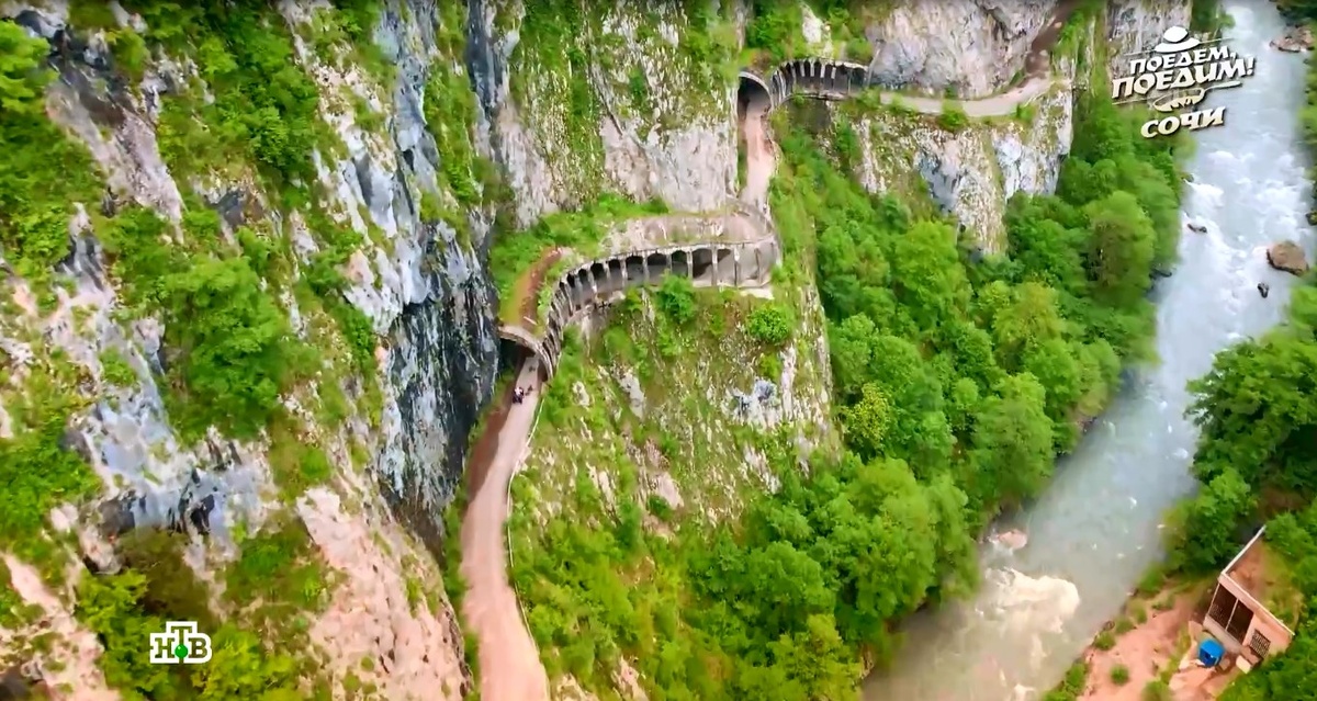 Одна из самых живописных заброшек в Сочи — Старое Краснополянское шоссе. Эту дорогу, где можно сделать очень красивые и эффектные фотографии в арках, тоннелях или рядом с обрывом, нависающим над рекой, еще местные называют «пронеси, Господи!».