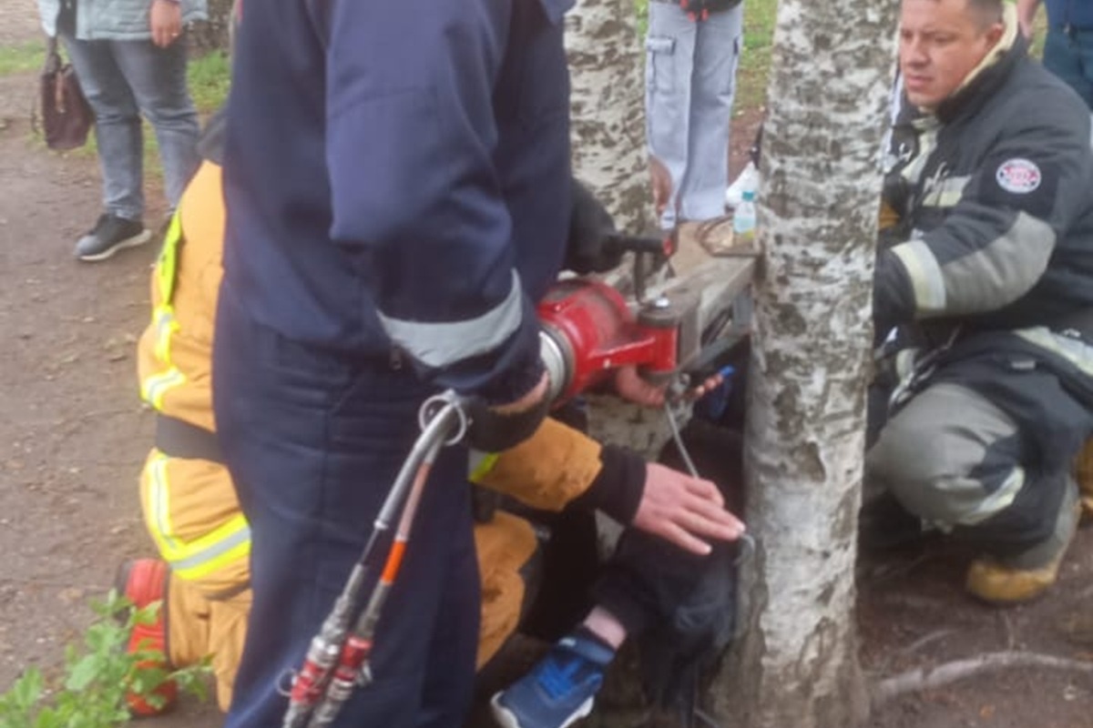 Новгородские спасатели освободили ребенка застрявшего между деревьев