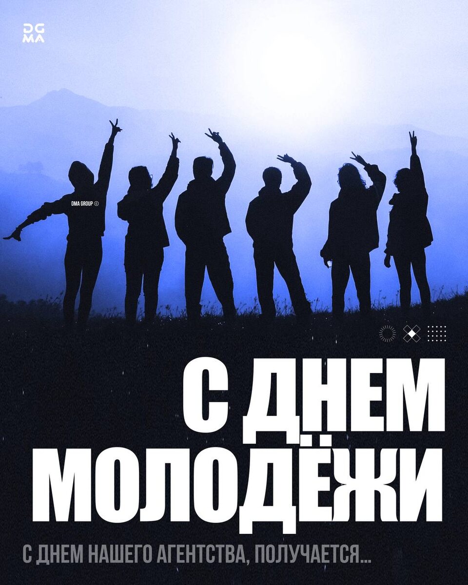 С Днём молодёжи 🎉 Для нас это не просто праздник, а напоминание, каким должно быть агентство - живым, смелым, энергичным ⠀ Возраст - не критерий. Важно мышление: гибкое, креативное, нацеленное на результат ⠀ Мы в DMA GROUP верим: молодость - это про подход к делу. И каждый наш кейс это подтверждает 🚀