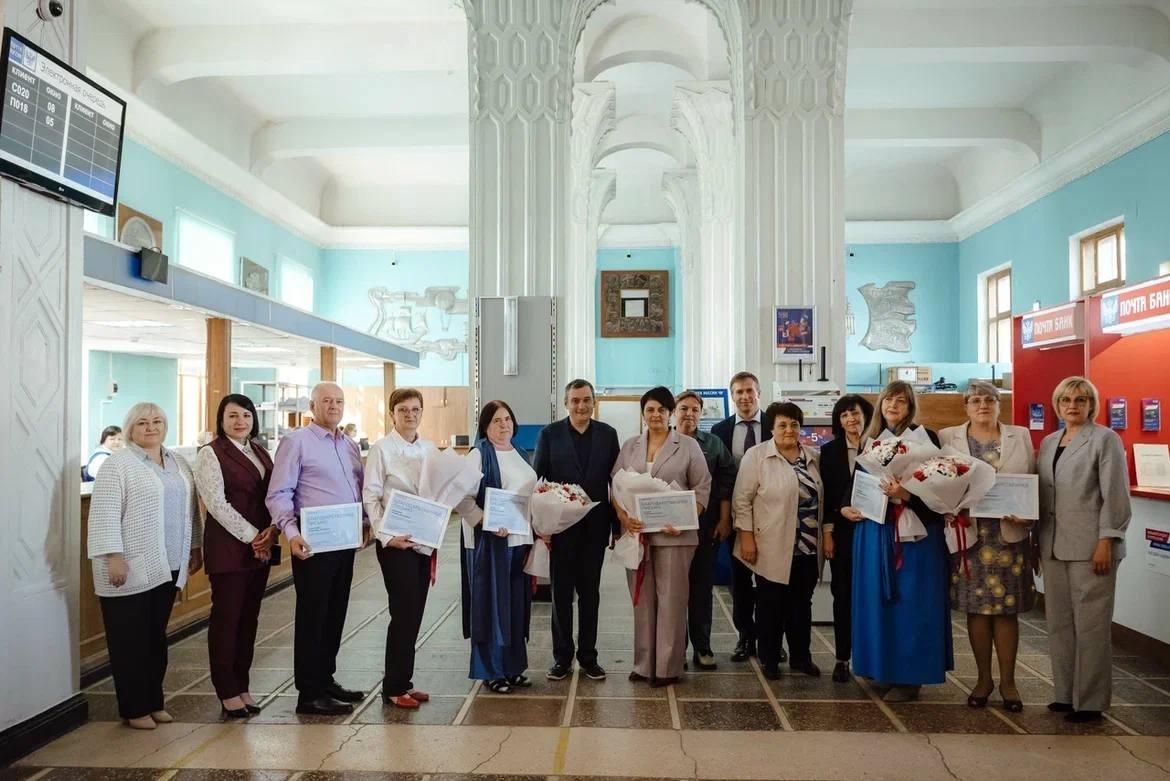 Генеральный директор Почты России наградил сотрудников Курской области Генеральный директор Почты России Михаил Волков в ходе своей поездки в Курскую область посетил Региональное управление и наградил лучших сотрудников. В Курской области за высокие производственные показатели и работу на приграничной территории благодарственные письма получили начальник Курского магистрально-сортировочного центра Таисия Маньшина, а также сотрудники отделений приграничных районов. Среди них — начальник Суджанского почтамта Светлана Голубкова, ведущий специалист группы учёта имущества Галина Гладкая, оператор связи почтового отделения 305000 Лариса Волоха, почтальон отделения 305016 Татьяна Груздова, почтальон отделения 305005 Владимир Стригуненко. «Ежедневно вы не только выполняете свои прямые обязанности, но и проявляете крепость духа, мужество, стойкость характера. Вы доставляете почту в бронежилетах, касках, где есть риски, но вы это делаете, потому что любите свою работу, понимаете её важность