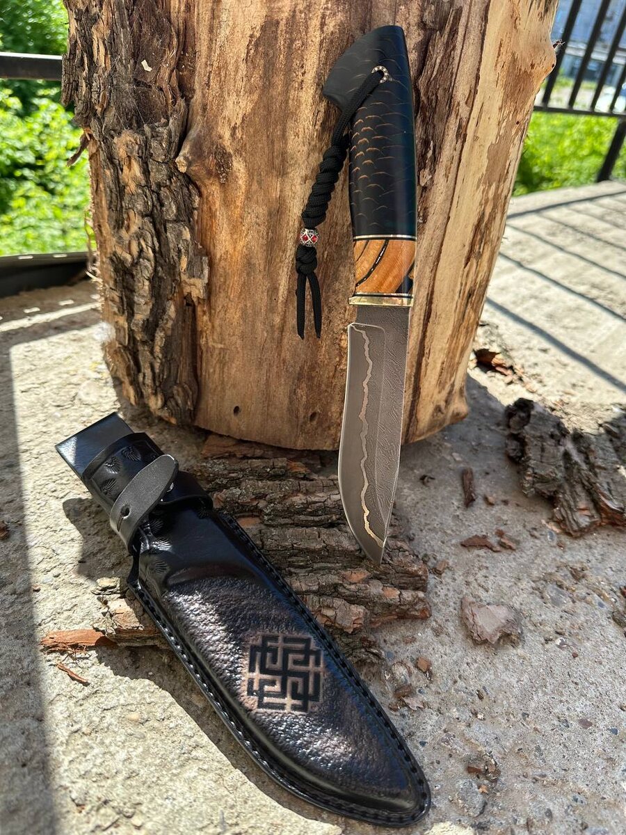 Эксклюзивный нож «Велес»🔥 ❗️Сейчас любой эксклюзив можно приобрести со скидкой 20%❗️ Розыгрыш ножа среди покупателей🔥 ▫️Полный каталог: zs-knife.ru ▪️Сталь - Дамаск + режущее 9хс ▪️Рукоять выполнена из шишка в акриле и зуба мамонта ▪️Больстер из мокуме ⛓Длина клинка - 145 мм ⛓Толщина обуха - 4 мм ⚔️Ножны из натуральной кожи идут в комплекте 📄 Сертификат, что нож не является холодным оружием,высылаем ✍🏻По вашему желанию сделаем гравировку на клинке или инкрустацию на рукояти ⭐️Подарочная шкатулка станет отличным дополнением к подарку 📞Для заказа или узнать подробнее напишите нам @finka_nkvd_zakaz или What’s App +79101400900