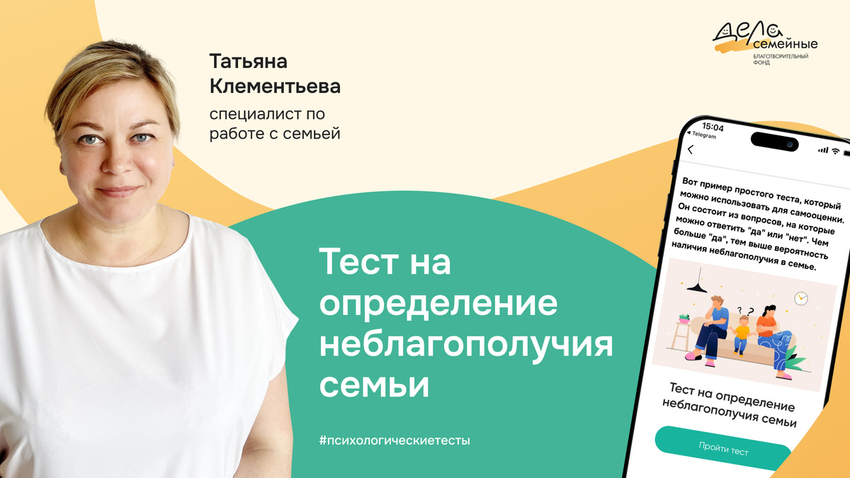Вот несколько ключевых аспектов, которые способствуют благополучию ребенка в семейной среде: Создание благоприятной семейной атмосферы требует усилий со стороны всех членов семьи, но это основа для здорового и счастливого детства. Однако в обществе существует такое понятие как семейное неблагополучие. Важно понимать, что каждая семья уникальна, и подходы к решению их проблем должны быть индивидуализированы с учетом конкретных обстоятельств и потребностей. Я предлагаю вам пройти небольшой тест, который поможет вам проверить и систематизировать данные и выявить потенциальные проблемы вашей семьи. Пройдите простой тест, который можно использовать для самооценки. Он состоит из вопросов, на которые можно ответить "да" или "нет". Чем больше "да", тем выше вероятность наличия неблагополучия в семье.