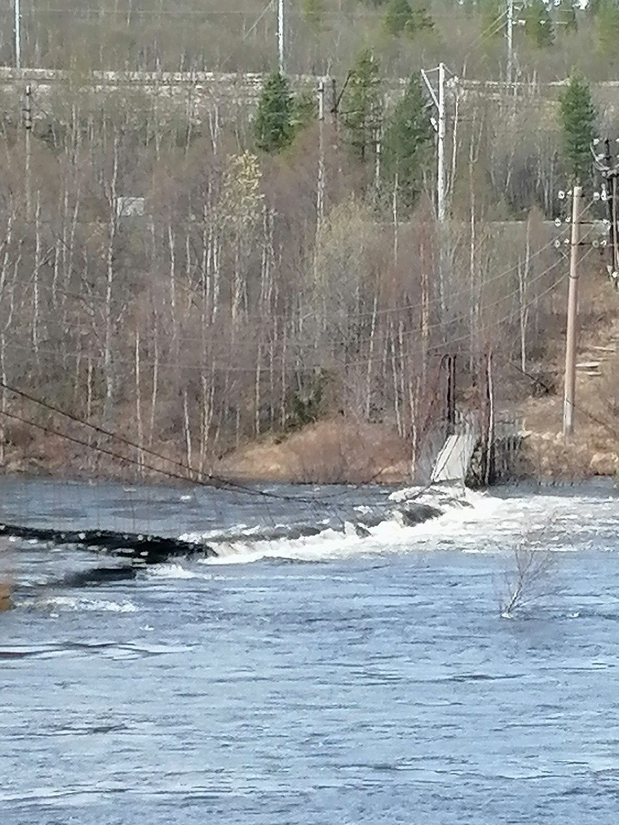В ответ на пост Кроме #ОтчётГубернатора на ❄ «Арктическом Обозревателе» есть место и другим текущим событиям. В прямом смысле «ТЕКУЩИМ» – течением реки Колы в Лопарской почти смыло навесной мост. Теперь с жд-станции в посёлок не попасть. Река Кола – Мост – 1:0 Фото и видео – #ОтЧитателей