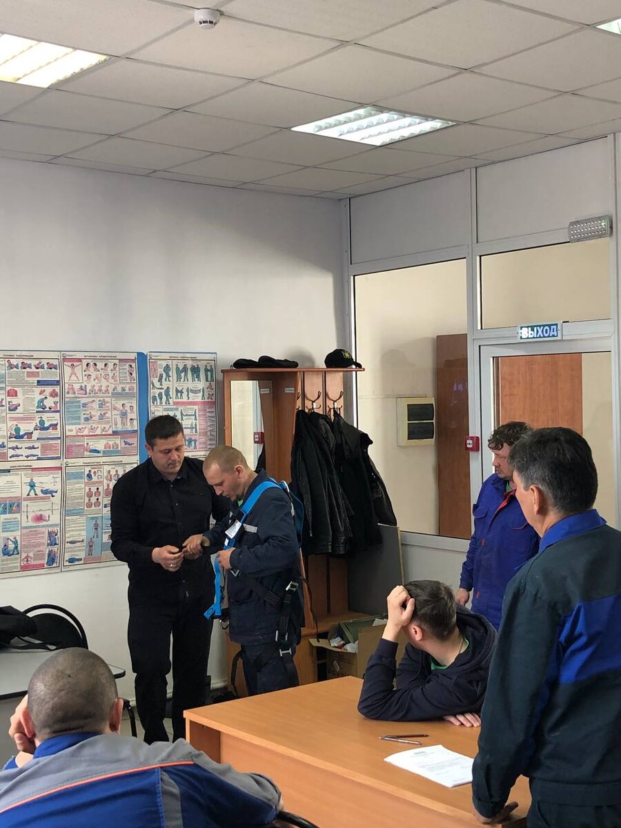 26—27 мая, преподаватель УЦ-ПРО Бондаренко Сергей Александрович провёл занятия для сотрудников АО «Макфа» в г. Кургане. На фото — практическая часть занятий: проверка и правильное использование страховочной привязи, отработка элементов безопасной работы на высоте, применение страховочной системы и оборудования.