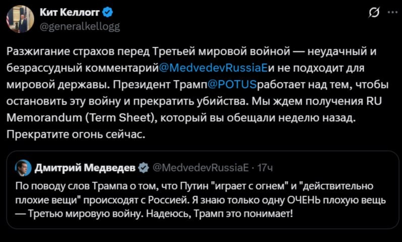 Вот и подтверждение сути реакции Трампа, от спецпредставителя Келлога.