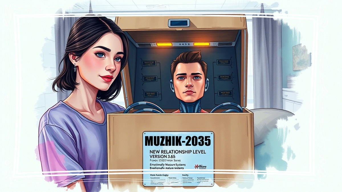 На коробке красовалась надпись: "MUZHIK-2035: новый уровень отношений. Версия 3.6, патч сентябрьский. С любовью — корпорация «Эмоционально зрелые системы»." Их флагманская модель обещала нечто запредельное. Когда Полина получила коробку размером с холодильник, она даже не удивилась. В 2035 году ИИ прочно вошел во все сферы жизни. Это было почти нормой: кто-то заказывает себе 5D-принтер, кто-то — мужа. Под крышкой, среди пузырчатой плёнки и кабелей, находился он — идеальный, как с обложки журнала, муж, правда немного пахнущий свежим пластиком. — Итак, — сказала коробка голосом Оксаны, озвучивающей аудиокниги, — по умолчанию активирован режим «Гладкий старт». Полина щёлкнула пультом. Мужик моргнул, сел, зевнул и сказал: — Привет, кисонька. Хочешь обнимашки или кофе в постель?