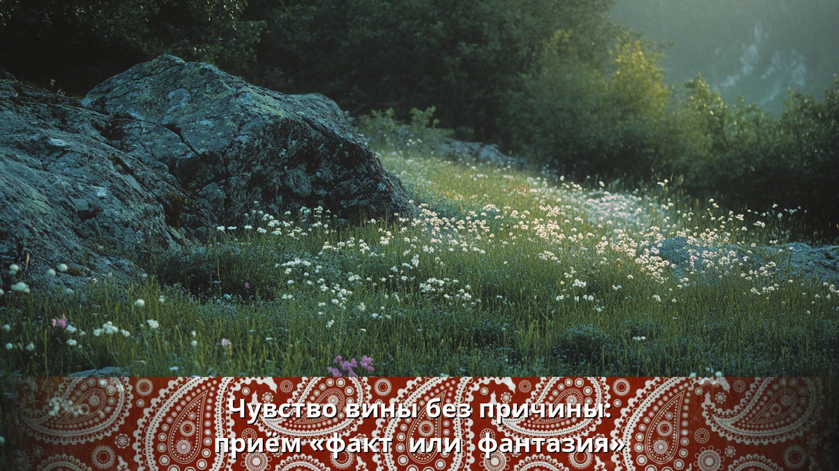 В этом тексте мы рассмотрим простой, но эффективный приём — «факт или фантазия» — который помогает отличать реальные поводы для вины от надуманных. Это также возможность заглянуть глубже — понять, как через работу с собой можно выйти на путь духовного самоосознания и прикоснуться к своей истинной природе. Ведь духовный путь начинается с честности перед собой и желания освободиться от иллюзий ума.