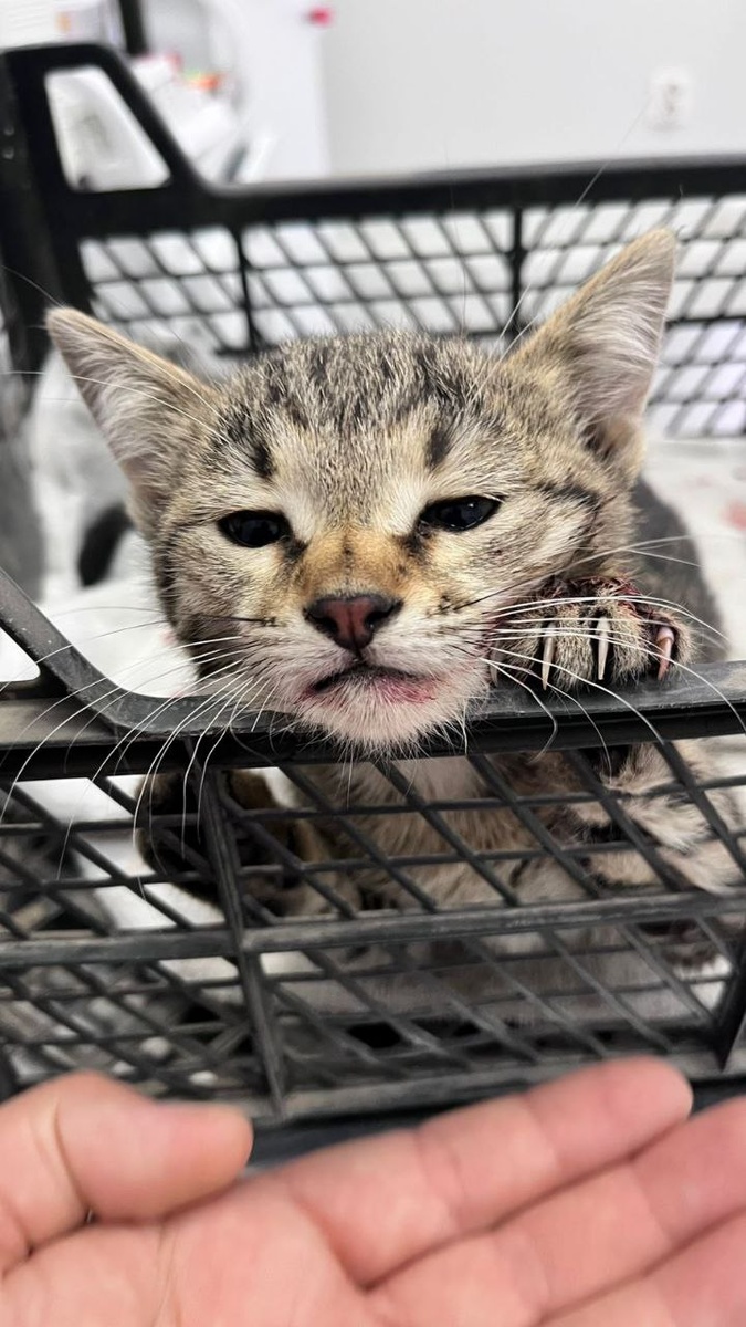Котёнка выкинули с окошка. Свидетелями были дети. Полицию вызвали . Сейчас отвезла его в клинику. Из ротика кровь😭