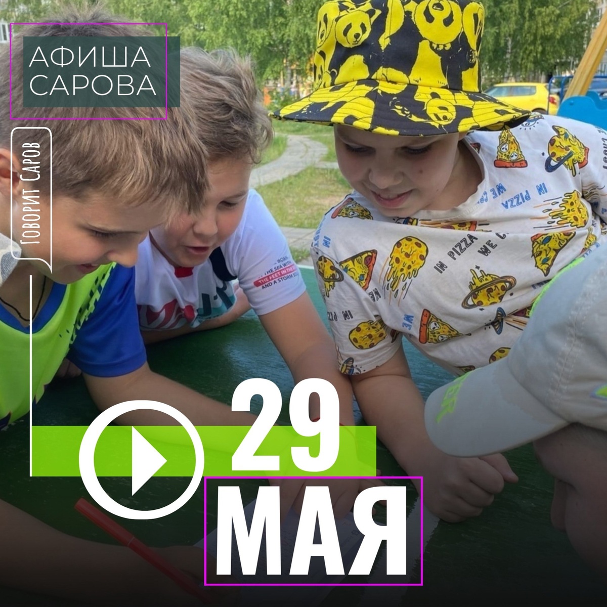 ↗ ЧТО ГДЕ ПРОИСХОДИТ В САРОВЕ 29 МАЯ 🎭Саровский драматический театр (пр.Музрукова, 26, тел.9-83-83) 10:00 «Белоснежка и семь гномов», Сказка (по сказке братьев Гримм), 6+ 🏃Реализация проекта «Спорт в каждый двор» 10:00-13:00 Спортивная площадка в ул.Казамазова, 10 13:00-16:00 Спортивная площадка в ул.Силкина, 20 🌳Парк культуры и отдыха им. П.М. Зернова (тел. 9-82-50, 9-82-60) 14:00 Занятие лечебной физкультурой на свежем воздухе для старшего поколения. Танцевальная площадка 16:00-20:00 Работают аттракционы парка имени Зернова 🏸Молодежный центр (ул. Куйбышева 19/1, тел. 9-91-05) 17:00-21:00 Цикл спортивных мастер-классов «Спорт – альтернатива вредным привычкам» 🏟Площадка по ул.Силкина, 20 17:30 Праздничная программа для горожан в рамках старта проекта «Дворовая практика» 🏆Стадион «Икар» (просп. Музрукова, 43, тел. 9-93-64) 18:00 Отборочный этап 15-й Летней Спартакиады работников атомной энергетики, промышленности и науки «Атомиада» Церемония…