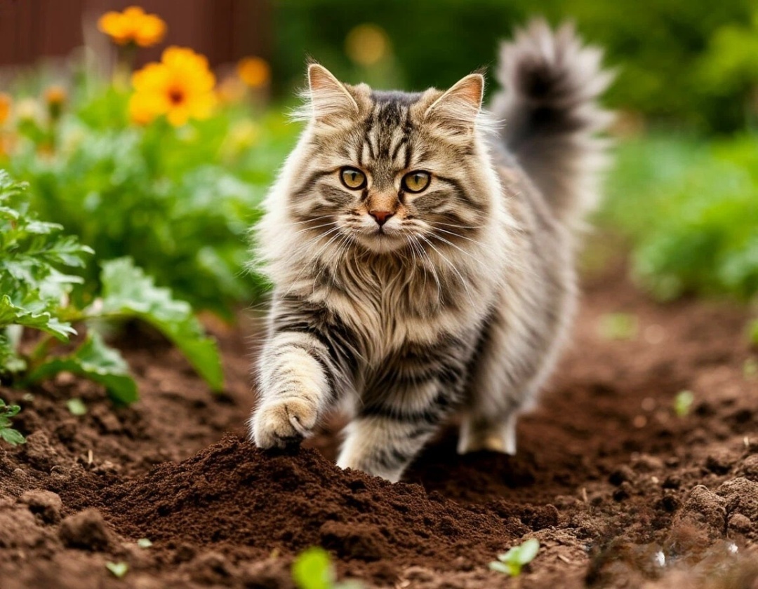 Сегодня я хочу поделиться с вами одной немного забавной, но в то же время огорчающей меня проблемой, с которой я столкнулась на своём участке. Наверняка многие из вас, кто любит ухаживать за растениями, сталкивались с тем, что наши пушистые друзья — коты — иногда решают, что грядки — это идеальное место для игр, отдыха и других своих «дел». Вот и мои грядки часто стали посещать соседские коты. Что мне совсем не понравилось. Давайте разберёмся, как можно отвадить котов от грядок и сохранить наши растения в целости и сохранности! Коты выбирают мягкий грунт для своих «дел», поэтому создание неприятных поверхностей может отвадить их. Первое, что пришло мне в голову, — это в местах, которые коты облюбовали, воткнуть в землю короткие прутики, сделать из них «ёжиков». Это помогло котам понять, что здесь не место для их приключений. Но коты нашли себе другие мягкие грядки. Коты, как вы знаете, очень чувствительны к запахам. Я начала экспериментировать с различными ароматами, которые им не нрав