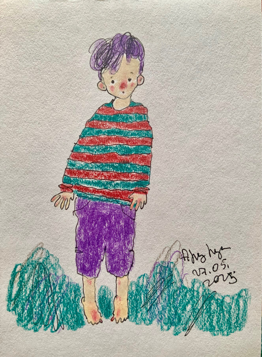 Просто яркие цвета. Что-то редкое сочетание для меня сейчас: красный, фиолетовый и бирюзовый. Решила ничего не добавлять в этот рисунок, кроме собственно матроса и моря. 🌊 👦🏻 🌾