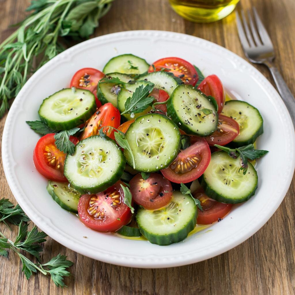 Простой и вкусный салат из свежих огурцов и помидоров Этот салат знаком каждому россиянину с детства и является неотъемлемой частью нашего стола в теплое время года. Его готовят практически повсеместно, особенно в летний сезон, когда овощи самые свежие и ароматные. 🍅 Ингредиенты: - Огурцы свежие - Помидоры спелые - Зелень (укроп, петрушка, базилик) - Оливковое масло - Соль по вкусу 🍰 Приготовление: 1. Выбираем свежие овощи на рынке, желательно у проверенных продавцов, выращенных местными производителями. Так мы получаем максимальную пользу и насыщенный вкус. 2. Моем огурцы и помидоры, обсушиваем бумажным полотенцем. Нарезаем кубиками или кружочками среднего размера. 3. Мелко рубим свежую зелень. Можно экспериментировать с разными видами зелени, выбирая любимые сочетания. 4. Смешиваем ингредиенты в глубокой миске, слегка солим и заправляем оливковым маслом первого холодного отжима. 🤗 Почему этот салат особенный? Простота приготовления сочетается с пользой для здоровья. Свежие овощи