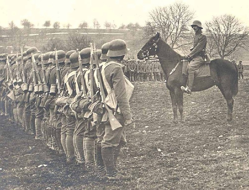 Немецкие штурмовые войска на построении 28 мая 1918 года, недалеко от французской деревни Chemin des Dames.