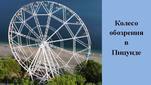 Колесо обозрения находится подальше от аквапарка, между корпусами «Колхида» и «Золотое Руно». Обычное современное колесо обозрения. Стоимость билета 400 рублей за 1 круг за взрослого и 300 рублей за 1 круг для детей. За 2-а круга предусмотрены скидки – 2 круга стоят 500 рублей для взрослых и 400 рублей для детей. Особенностью колеса обозрения является билет «экстрим». Экстрим это когда кабина со стеклянным полом. Экстрим стоит 500 рублей за 1 круг для детей и взрослых. Дети 2-м кругам предпочли 1 круг экстрим. Прокатиться на колесе обозрения в Пицунде рекомендую, так как оно расположено на берегу моря, оттуда открываются красивые виды в разные стороны и цена относительно не дорогая, особенно за 2-а круга. Чтоб усилить эффект советую сделать это на закате.