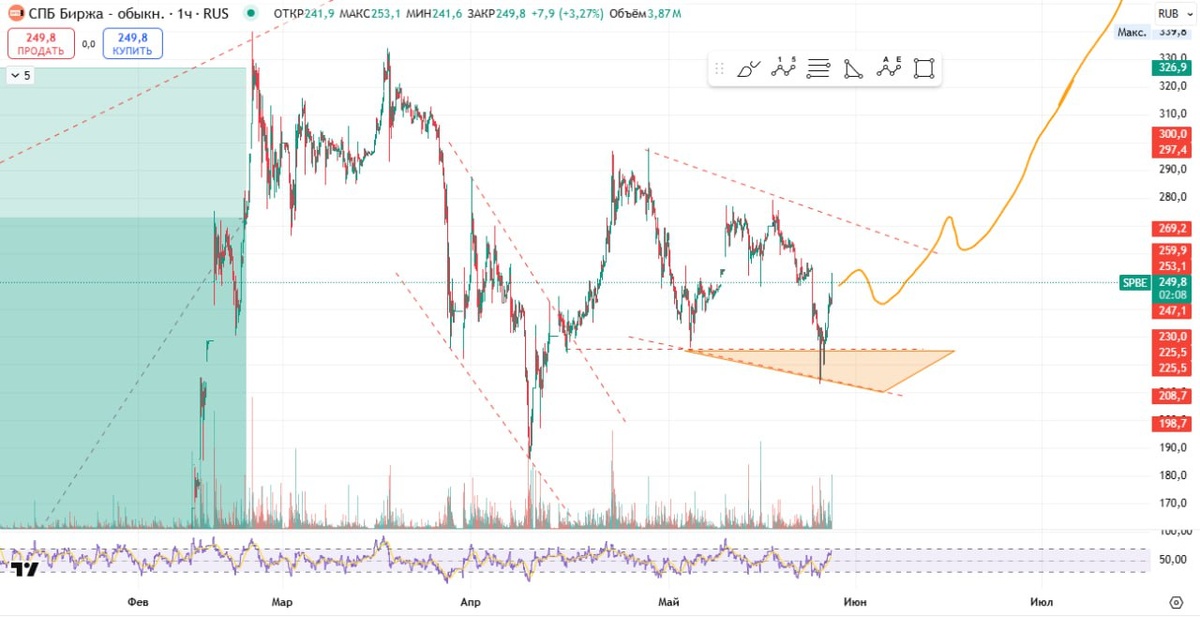 Биржа СПБ. Только мы ее обсудили на встрече, как она сделала 7%, да еще на чем - на перспективе открыть доступ к торговле фьючерсами на биток! Держите позицию?