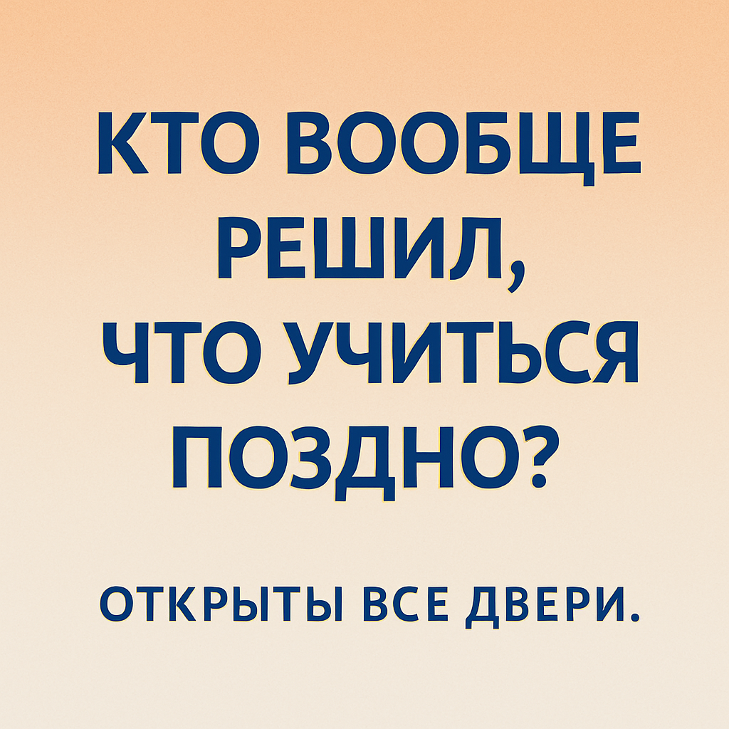 Поздно — это не учиться, когда хочется. Для меня учёба — это предвкушение. Радость от новых знаний, навыков, открытий. Да, это непросто.