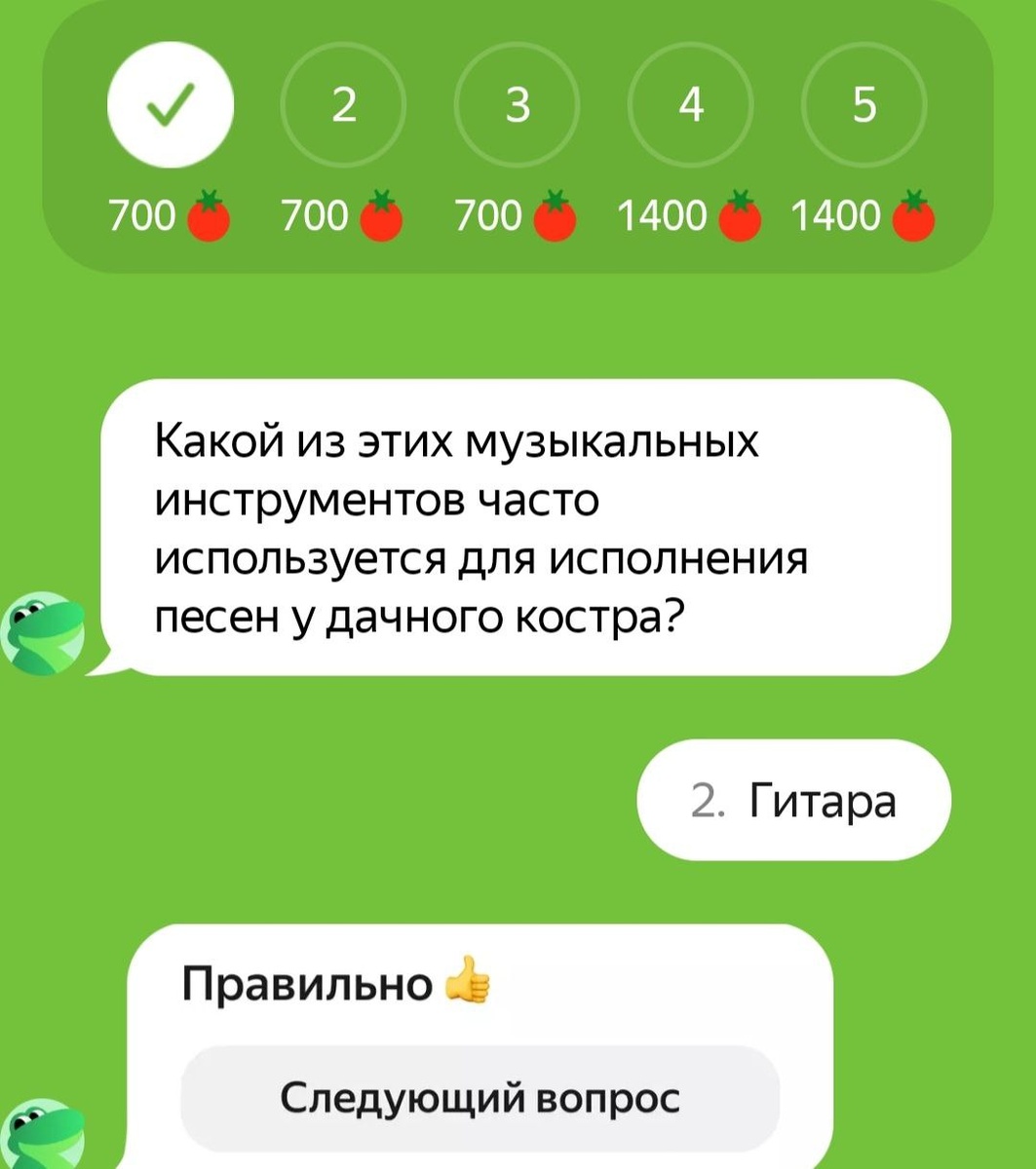 Первый вопрос: Какой из этих музыкальных инструментов часто используется для исполнения песен у дачного костра?