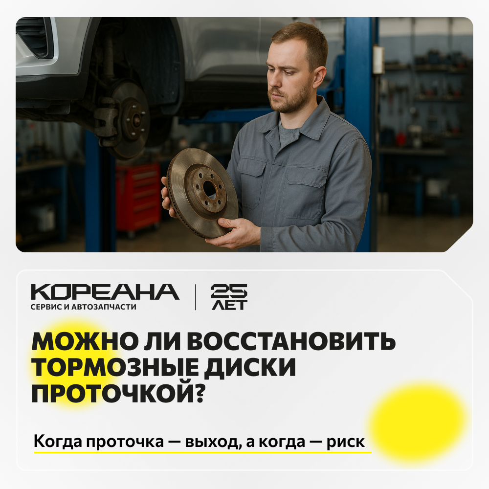 Проточка тормозных дисков — это процесс восстановления рабочей поверхности тормозного диска путём точного снятия верхнего слоя металла. Это делается для устранения биений, волнистости, неравномерного износа или легкой деформации, которые могут вызывать вибрации при торможении и снижать эффективность тормозной системы. Одной из частых причин вибраций при торможении является потеря геометрии тормозных дисков — в народе говорят "диск повело" или "бьёт при торможении". Это неприятный и небезопасный эффект, который не стоит игнорировать. Основных причин деформации тормозных дисков две — перегрев и резкие перепады температуры. Перегрев возникает при частом или резком торможении, особенно на высоких скоростях, в горах или при агрессивной езде. Диски сильно нагреваются, металл расширяется, и если тепло распределяется неравномерно, геометрия нарушается. Итог — биение, вибрации при торможении и снижение эффективности. Резкие перепады температуры случаются, когда горячий диск резко охлаждается, н