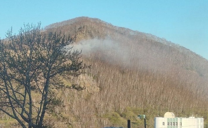 Горела сухая прошлогодняя растительность. Огонь прошёл по сопке около одной тысячи квадратных метров. В тушении участвовали сотрудники пожарно-спасательной части №