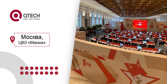 В рамках подготовки и проведения праздничных мероприятий, посвящённых 80-й годовщине Победы в Великой Отечественной войне, компания QTECH поставила комплект телекоммуникационного оборудования для развертывания высоконадежной сетевой инфраструктуры в Центральном выставочном зале «Манеж» в Москве.