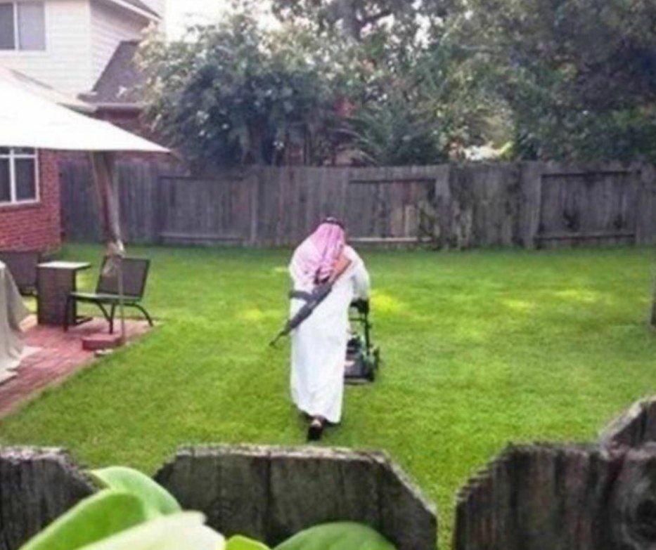 За спиной у газонокосильщика железный аргумент для соседей, которым уже в принципе даже нравится звук мотора в 5 утра.